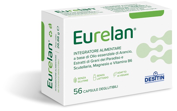 Agenti di carica: cellulosa microcristallina (gel di cellulosa); Serenzo arancio (Citrus sinensis L. Osbeck, pericarpum) olio essenziale standardizzato al 20% in limonene (supportato su gmma di acacia), capsula vegetale (ingredienti: idrossipropilmetilcellulosa), Vanizem grani del paradiso (Aframomum melegueta K. Schum., semen) estratto secco tit. 10% vanilloidi totali, magnesio ossido, BlueCALM scutellaria (Scutellaria lateriflora L., herba) estratto secco tit. 10% baicalina; agenti antiagglomeranti: biossido di silicio, sali di magnesio degli acidi grassi, vitamina B6 (piridossina cloridrato).