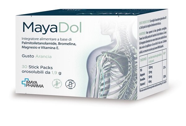 Palmitoiletanolamide (PEA), glicerofosfato di magnesio; edulcoranti: sorbitolo, eritritolo, sucralosio, neoesperidina DC; bromelina 2.500 GDU*/g da Ananas comosus (L.) Merr., aroma; agente emulsionante: esteri di saccarosio degli acidi grassi; acetato di DL-alfa-tocoferile (vitamina E); agente acidificante: acido citrico; agente antiagglomerante: biossido di silicio, talco.