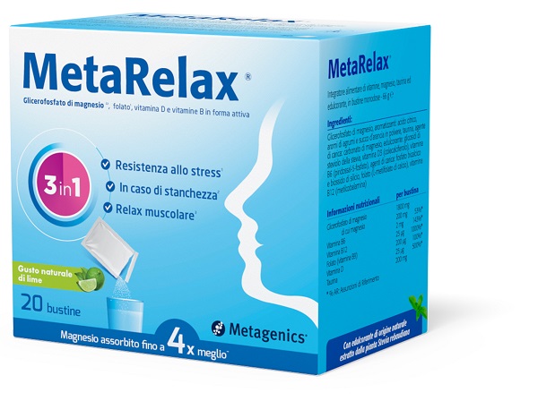 Glicerofosfato di magnesio; regolatore dell’acidità: acido citrico, aromi di agrumi e succo d’arancia in polvere; taurina; agente di carica: carbonato di magnesio; edulcorante: glicosidi di steviolo della stevia; vitamina D3 (colecalciferolo), vitamina B6 (piridossal-5-fosfato); agenti di carica: fosfato bicalcico e biossido di silicio; folato (L-metilfolato di calcio), vitamina B12 (metilcobalamina).