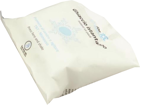 Premere con entrambe le mani verso il centro fino ad ottenere la rottura della bolla interna. Agitare il sacchetto per miscelarne il contenuto. Applicare sulla parte interessata.