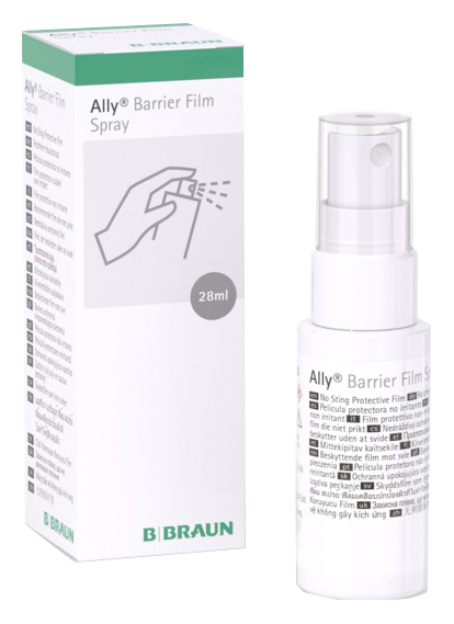 – rimuovere il coperchio. Tenere il nebulizzatore a 10-15 cm dalla cute e premerlo per applicare uno strato uniforme di pellicola sull’area di interesse. Lasciare asciugare per 30 secondi. Se necessario, ripetere l’applicazione su eventuali aree non adeguatamente ricoperte;