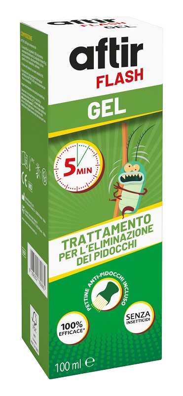 – Con AFTIR FLASH gel si possono manifestare i seguenti effetti collaterali: irritazione, esfoliazione o secchezza del cuoio capelluto o del collo (la pelle a contatto con AFTIR FLASH gel diventa rossa, secca, pruriginosa, leggermente danneggiata, può comparire la forfora); irritazione o gonfiore degli occhi (in caso di contatto con AFTIR FLASH gel); reazioni allergiche o di ipersensibilità (eruzione cutanea, arrossamento, gonfiore, ecc.).