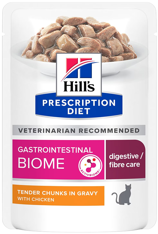 Carne e derivati di origine animale (pollo 21%), derivati di origine vegetale, cereali, estratti di proteine vegetali, uova e derivati a base di uova, pesce e derivati del pesce, zuccheri vari, frutta, sostanze minerali, semi, oli e grassi; ingredienti altamente digeribili: pollo, suino, amido di mais, amido di tapioca, glutine di frumento, uova in polvere, salmone, farina di riso, farina di frumento, zuccheri vari, idrolisati, farina di orzo, olio di pesce, destrina di mais; ActivBiome+ miscela prebiotica (2,5%): gusci di noci di pecan macinati, semi di lino, polpa di barbabietola disidratata, polpa di agrumi disidratata, mirtilli disidratati; vitamina A, vitamina D3, vitamina E, vitamina C, beta- carotene; proteine 8,9%, tenore in materia grassa 4,0%, fibra grezza 1,2%, ceneri grezze 1,5%, umidità 75,5%, calcio 0,20%, fosforo 0,16%, sodio 0,09%, potassio 0,18%, magnesio 0,01%.